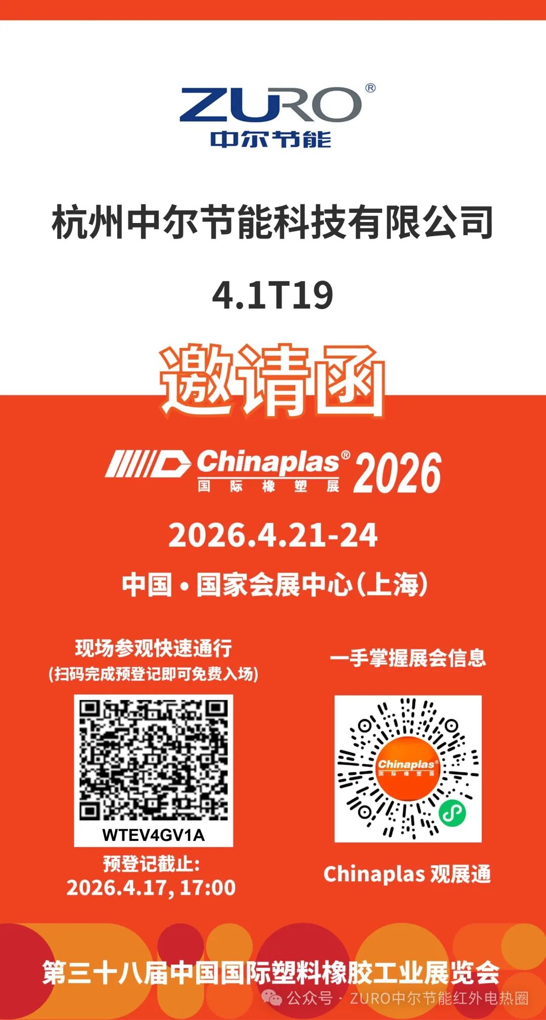 中尔节能诚挚邀请各位行业同仁、新老客户莅临上海国家会展中心 4.1 馆 4.1T19 展位,现场体验核心主打产品的技术实力,深入交流注塑机、挤出机电加热配套的成熟方案,共同探索橡塑行业绿色低碳。